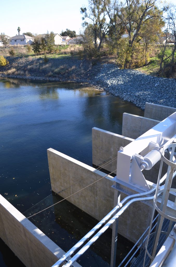 This project required a Turn-Key Design and Installation of a automated SCADA control system on a new Fish Screen Structure. The screen were designed and installed to prevent Salmon in the Sacramento River from migrating into the Irrigation districts drain canal at Knights Landing. The automation portion of the project required each of four (4) fish screen to follow the downstream water level keeping the screen tip two feet above the water thus preventing the Salmon from entering the drain canal. Because of debris loading on the face of the screen the screen were require to lower (Flush) based on upstream and downstream level differentials or time. Because of excessive debris loading an Extensive Alarming and automated callout was designed to alert operators 24/7 of any gate operational problems.